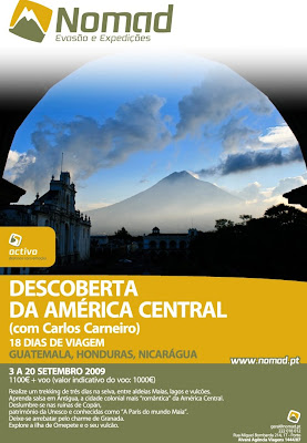 (clique na imagem para ver maior) O objectivo é potencializar os nossos currículos de viagens – o meu inclui um ano a atravessar a América Latina – para que esta aventura seja uma experiência completamente diferente, fluida, intensa e perto do que mais interessa – as pessoas. Os detalhes estão em: http://www.nomad.pt/america_latina/guatemala/viagem2/descricao.htm Em caso de dúvidas podem entrar em contacto com a Nomad, ou para o meu e-mail pessoal: hlcarneiro@gmail.com